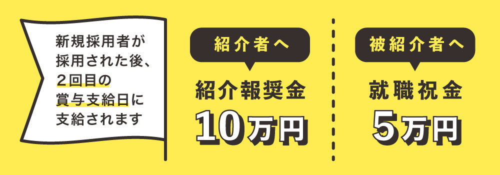 • ②紹介報奨金は支給時に紹介者または被紹介職員が退職した場合、就職祝金は被紹介者が退職した場合、支給対象外となります。